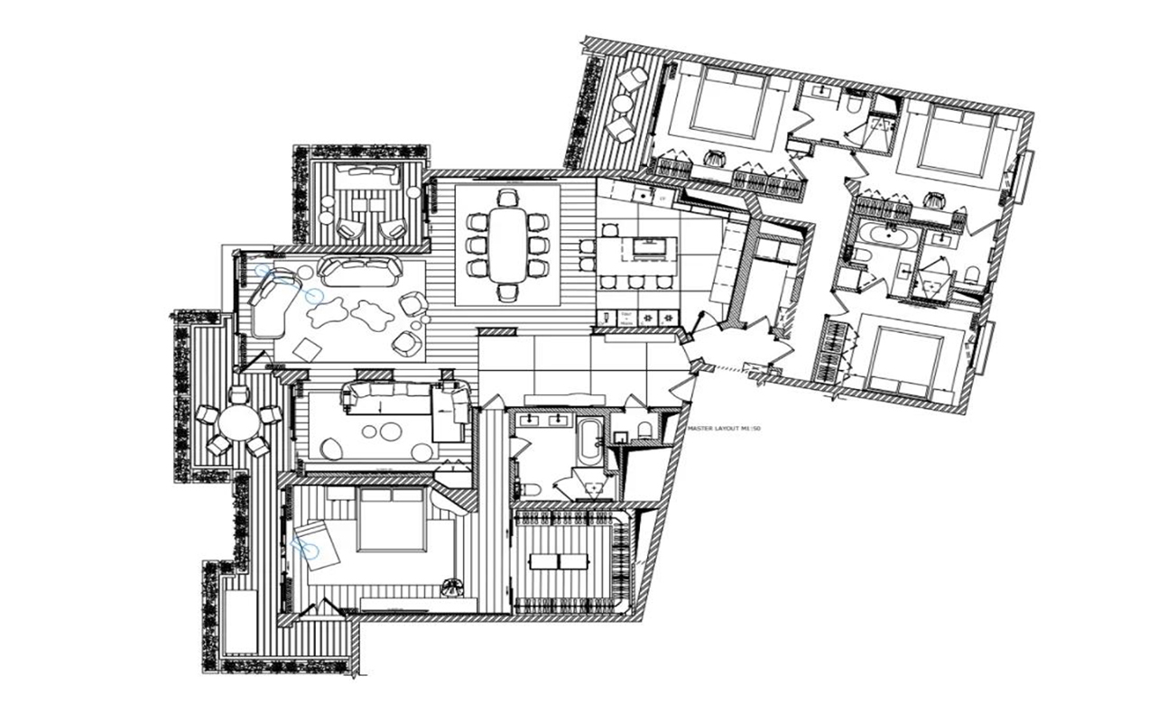 The apartment consists of an entrance hall, a living room with home cinema, a kitchen, 4 beautiful bedrooms with bathrooms and separate toilets.