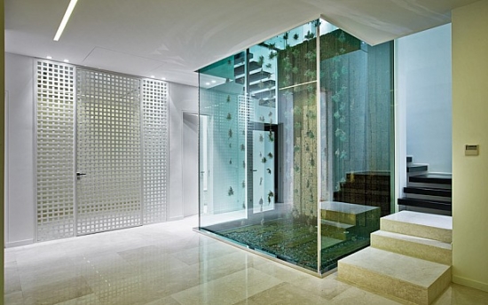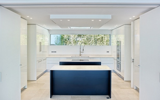 Pool with overflow, 2 terraces, garage for 4 cars.