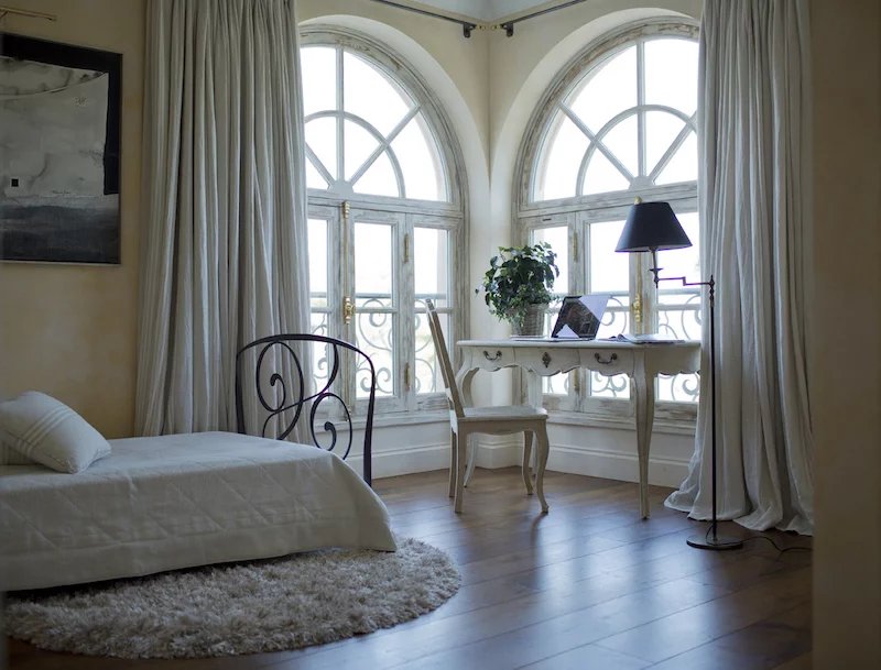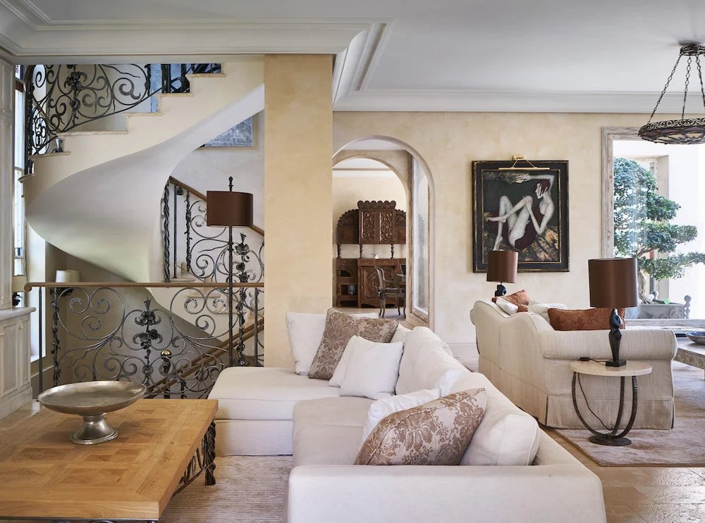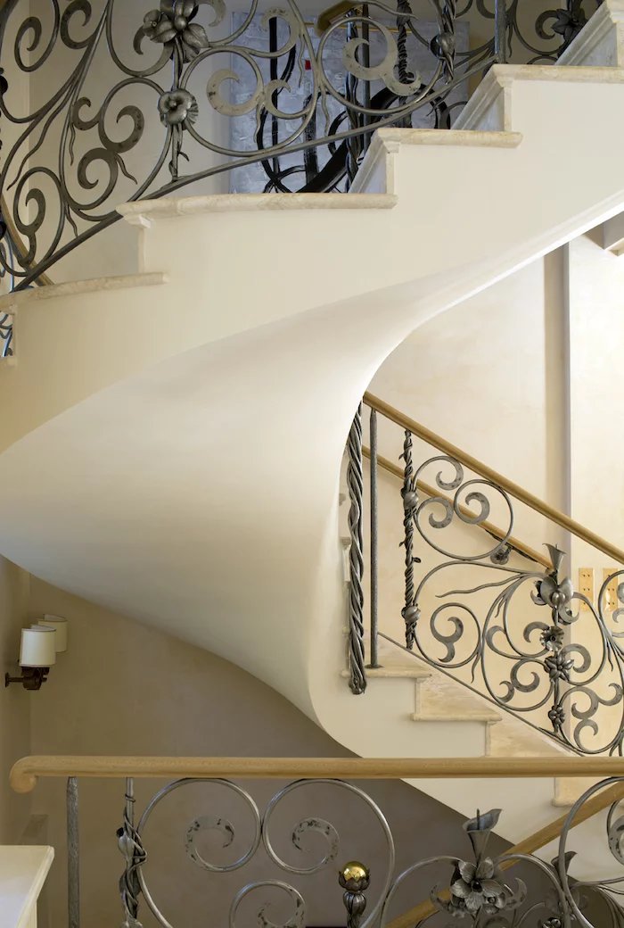 The finishes reflect exceptional craftsmanship, including unique pieces such as artistic ironwork, personalized bathroom decorations and poetic stained glass in the stairwell.