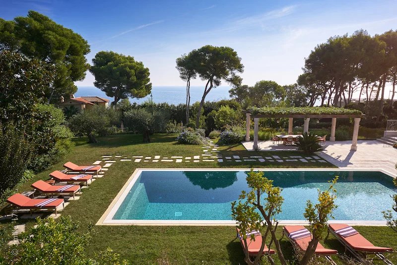 The property measures approximately 650 m2 and consists of 9 en-suite bedrooms, a family kitchen and a professional kitchen with dumbwaiter, home cinema, garage for 6 cars, heated swimming pool and security house.