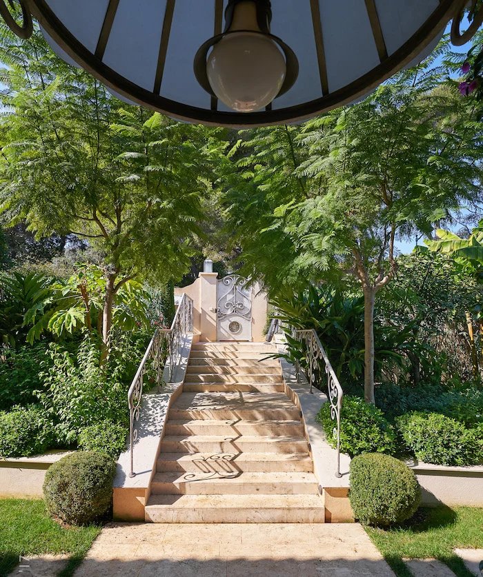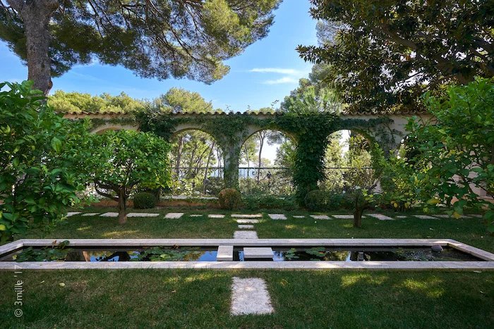 The garden, designed from an aesthetic point of view, offers a palette of Mediterranean plants, highlighting the extraordinary pine tree.