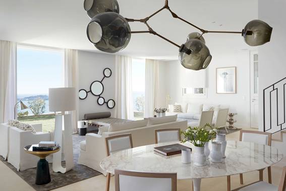 - Beautiful living room with access to the garden and pool