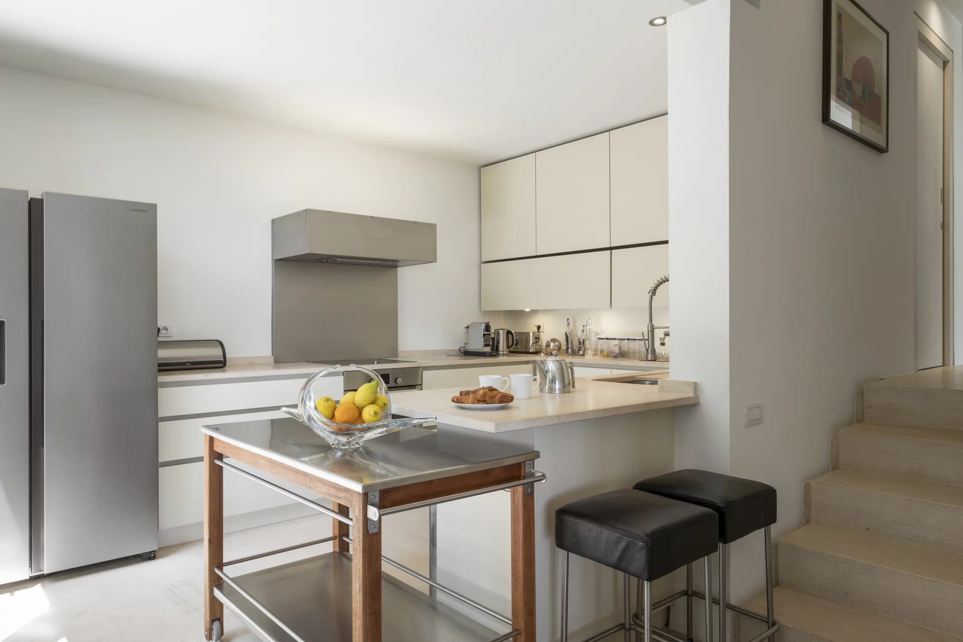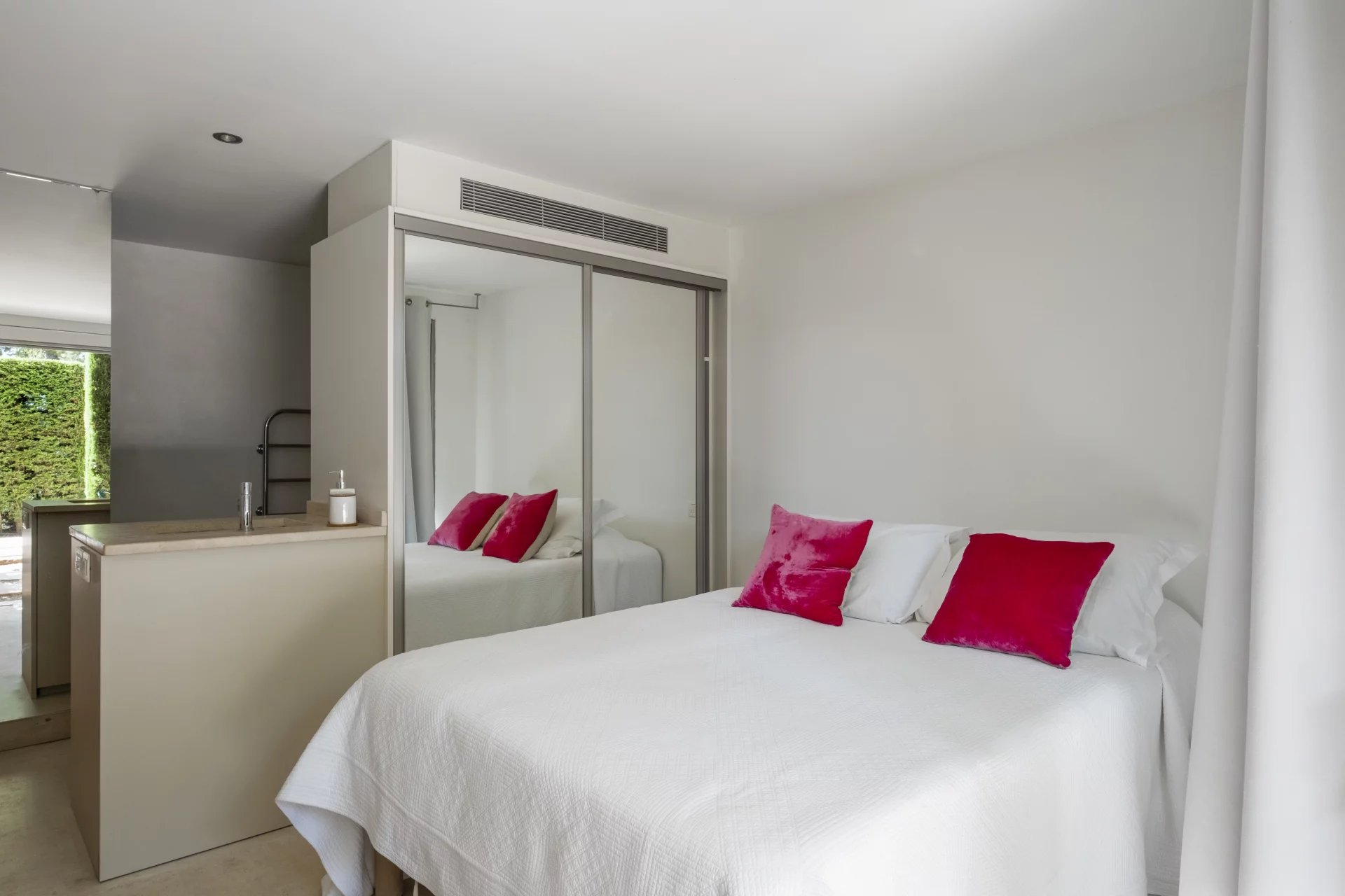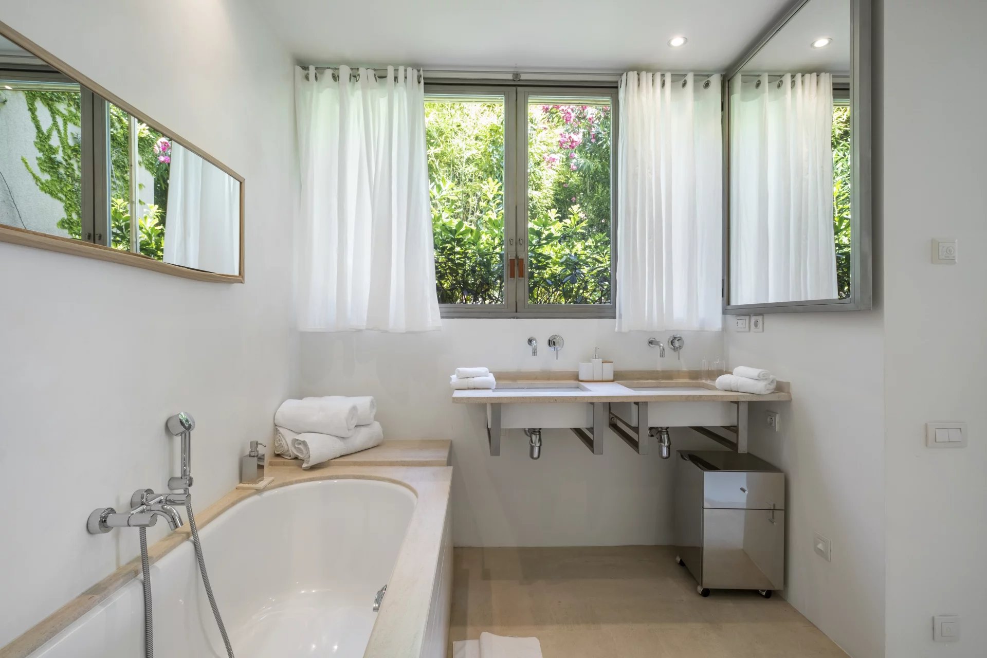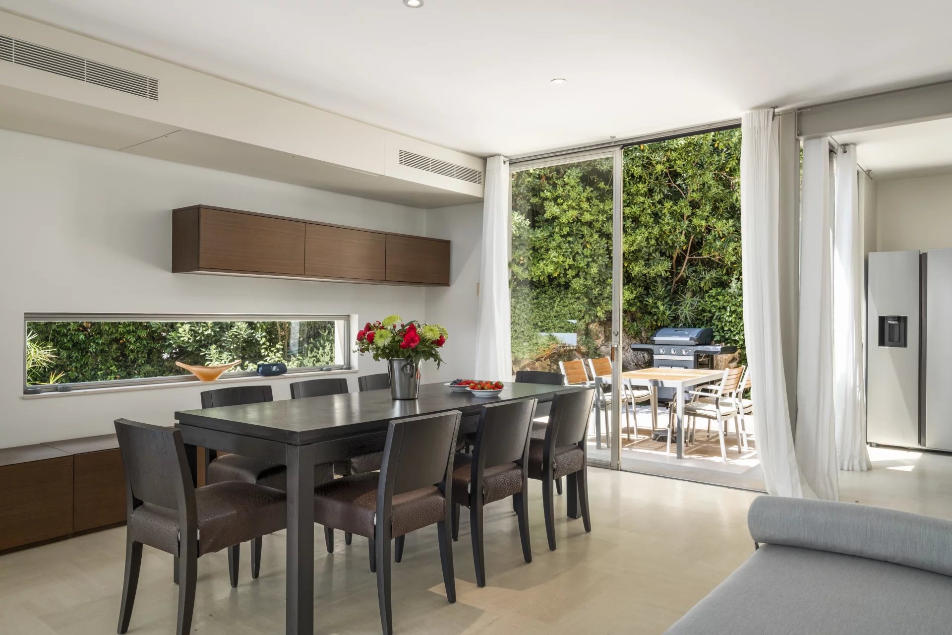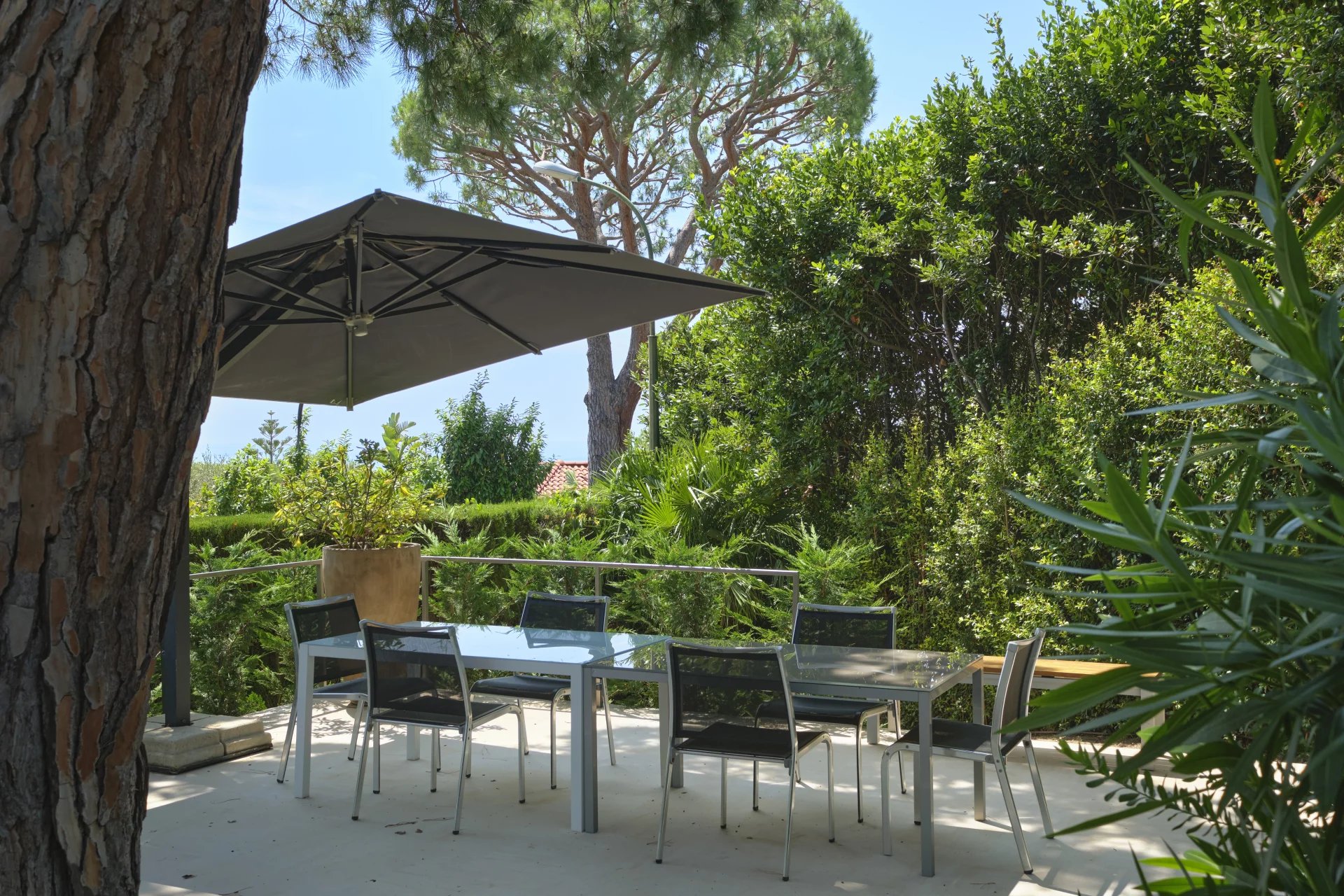 In a quiet and residential area in the heart of Cap Ferrat, a very beautiful modern Californian style villa, with approximately 250 m² of living space on a plot of approximately 3,500 m². Swimming pool (15 m x 10) with a beach, beautiful sea view, exotic garden with a Japanese pond.