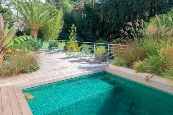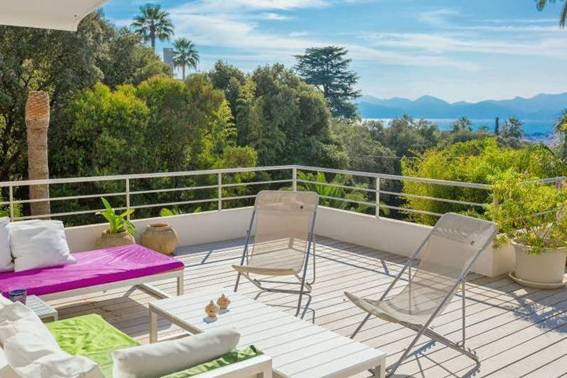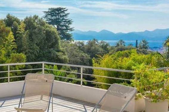 Modern, newly renovated villa is located in a quiet area of California, a 10-minute walk from the city center, the Croisette and the beaches, with a beautiful view of the sea.
