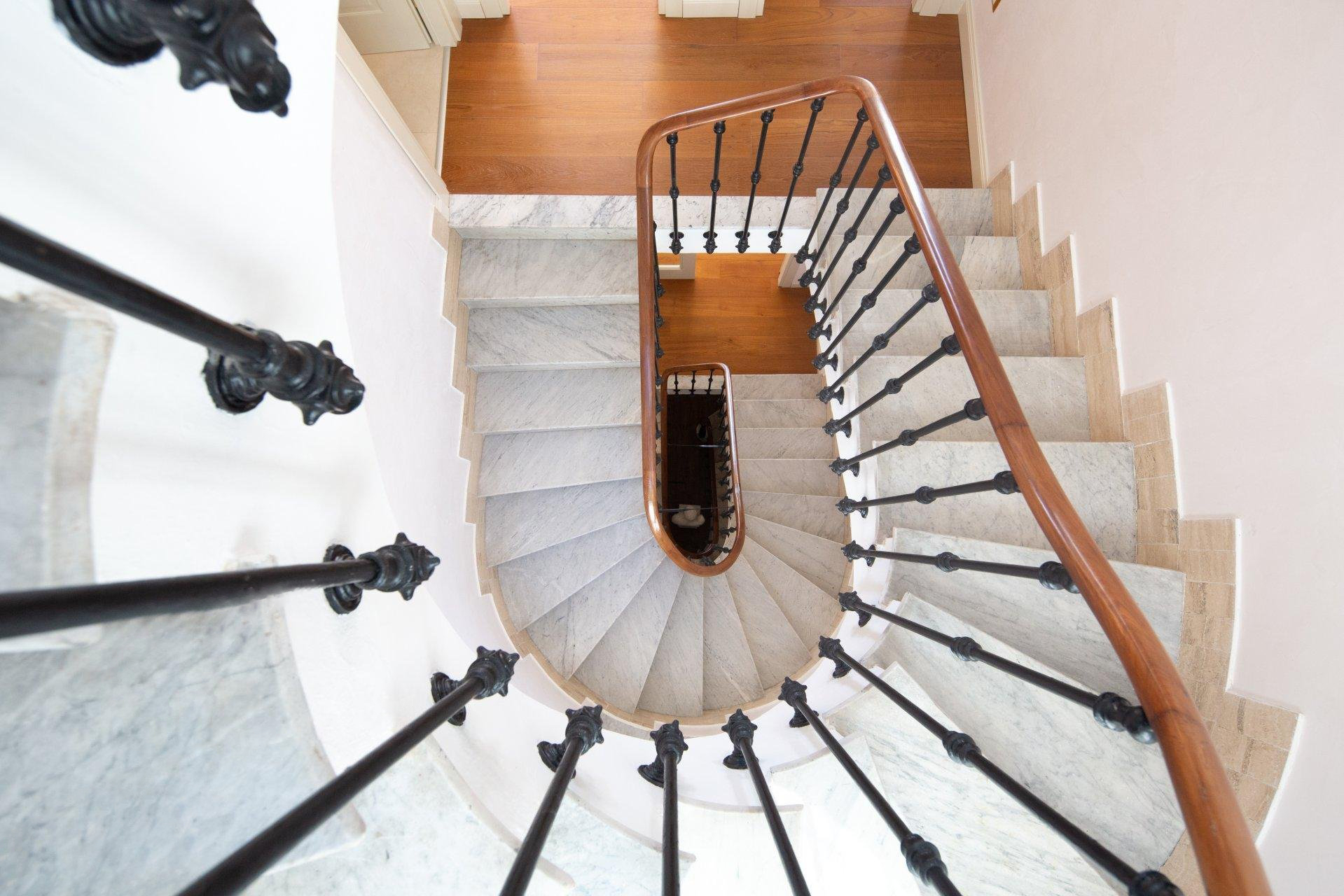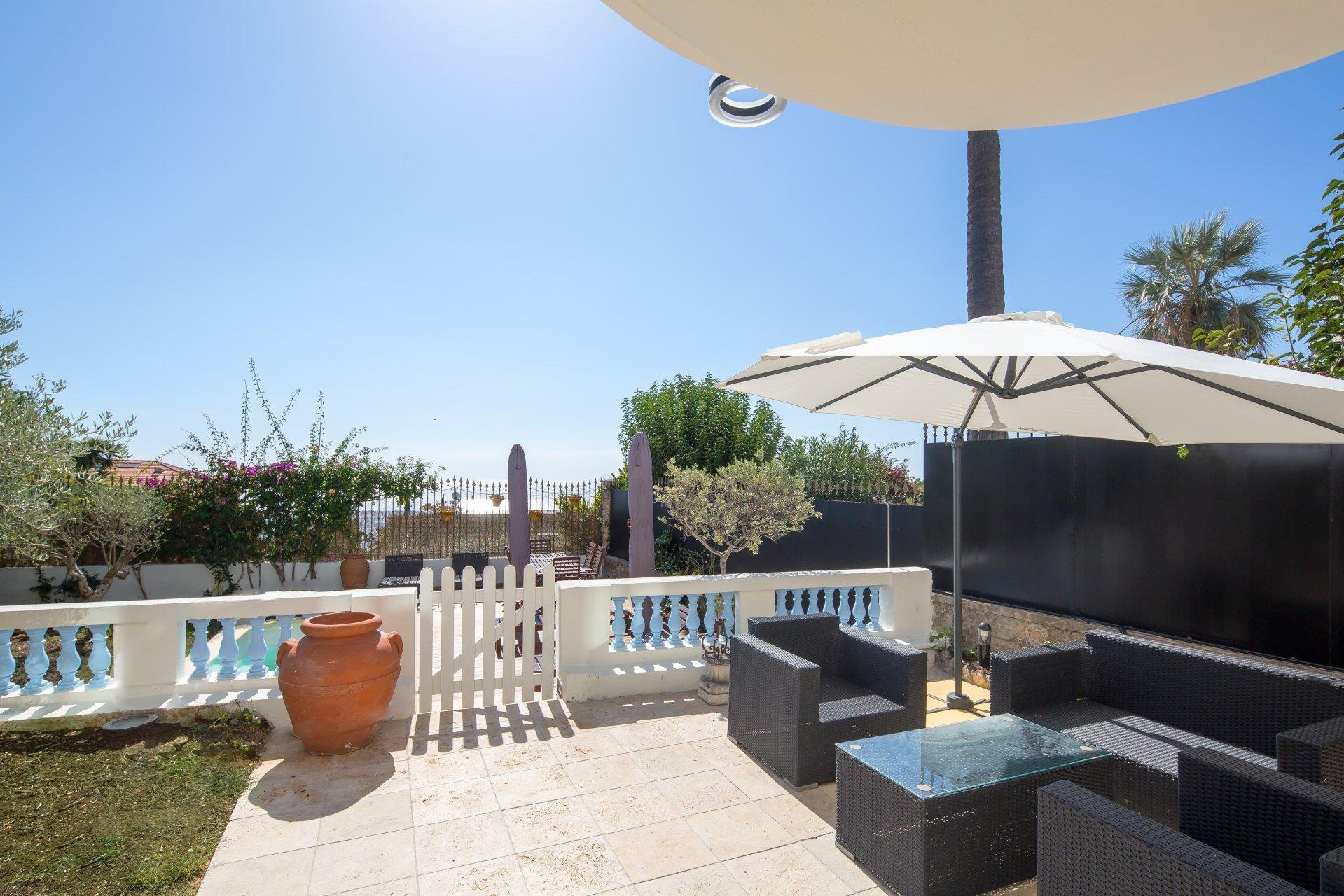 The villa on 3 levels has a double living room with a round balcony, a modern fitted kitchen, 4 bedrooms with storage rooms, an office, 3 bathrooms and a huge solarium terrace with 360° views.