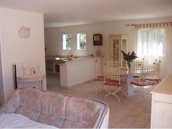 A small and comfortable villa near Vence. Located in a quiet area 9 km from the sea. It has its own garden with a large swimming pool. Tastefully decorated and furnished interior. Lovely view of the high mountains, from the terrace of the house. 5 bedrooms. 2 bathrooms. Living / Dining room. The completed kitchen. Swimming pool. Living space: 250 m² . Total land area: 2,500 m²