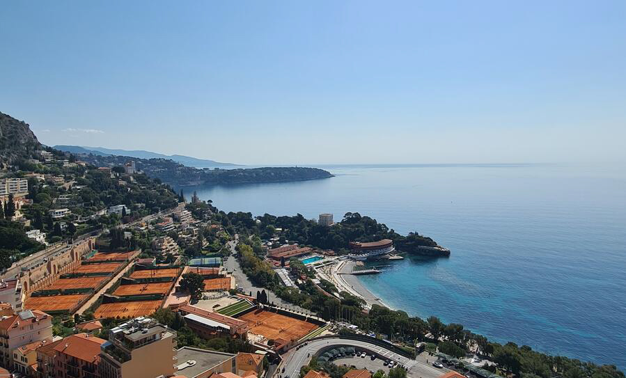 Cet appartement en excellent état est situé en étage élevé d'une luxueuse résidence de 32 étages, Parc Saint-Roman construite en 1982 avec piscine, pool house, solarium, snack bar, sauna, salle de sport, parc et sécurité 24h/24, à quelques minutes des plages du Larvotto, à côté du prestigieux Monte Carlo Tennis Club,