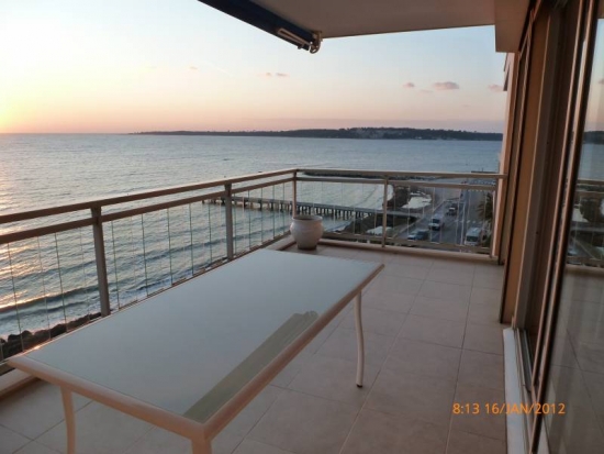 Bel appartement au dernier étage avec une vue panoramique sur la mer. Grand salon avec accès à la terrasse, cuisine séparée, salle de bains, 2 chambres. Parking.