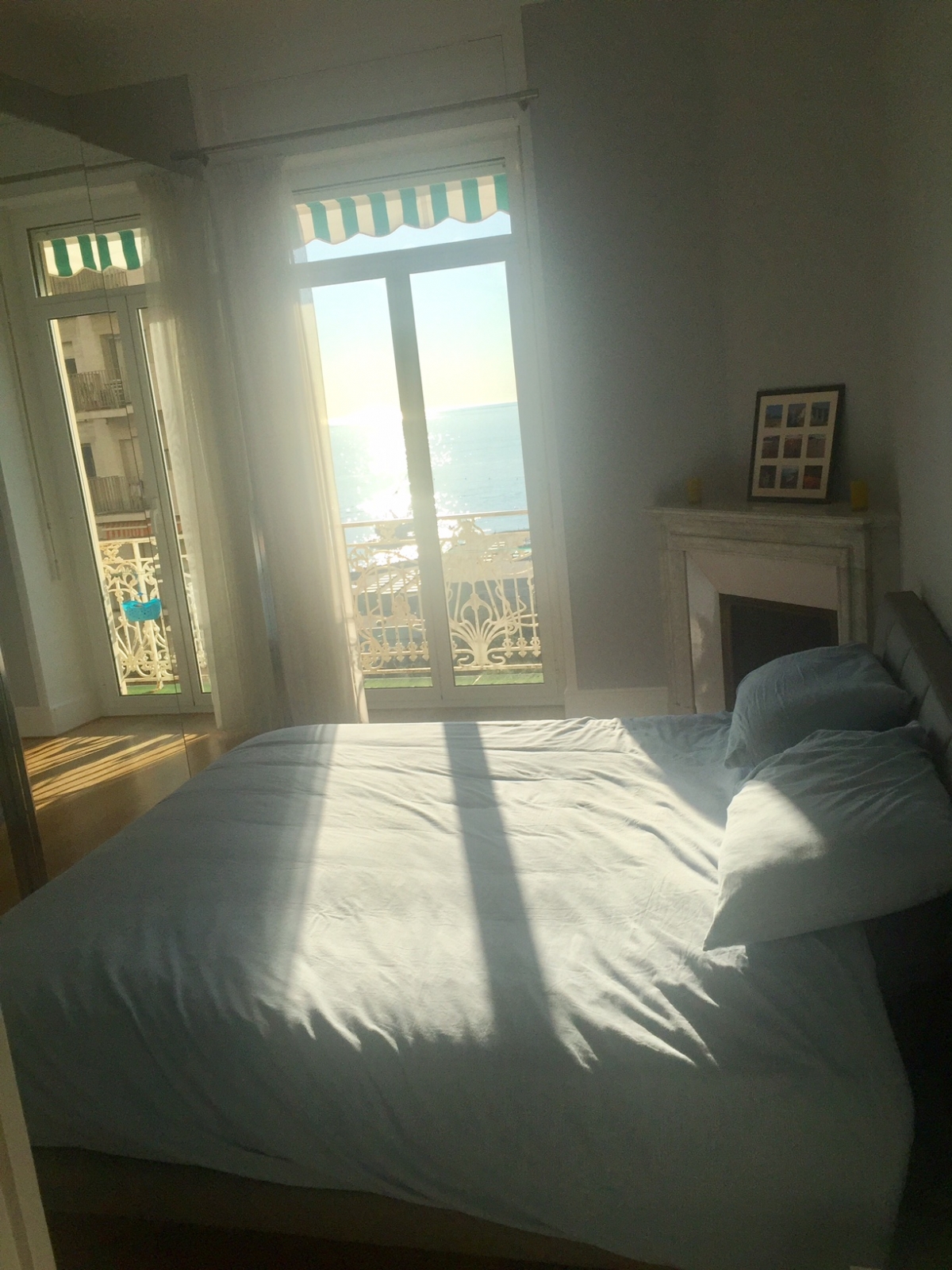 Dans un immeuble situé à quelques pas des Jardins du Casino, trés beau 3P rénové, cuisine en parfait état, parquet au sol et vue mer.
