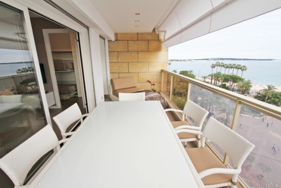 Devant Palais des Festivals avec vue super dégagée sur tapis rouge et sur la mer bel il y a un appartement de 3 pièces, surface habitable de 60 m2 environ et plus de 15m2 de terrasse. L’appartement est situé au 8 étage. Il est composé d’un séjour avec cuisine américaine, chambre de Maitre avec baignoire et feu ouvert, salle de bains avec double souche, chambre des invités avec douche, wc indépendant et grande terrasse en façade. Appartement entièrement climatisé.