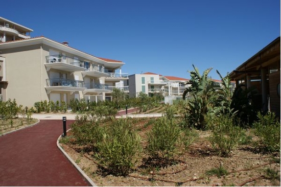 La résidence est très verdoyant, bien entretenue, et dispose de deux piscines: une grande piscine avec un toboggan et la piscine pour enfants d'une profondeur de 40 cm.