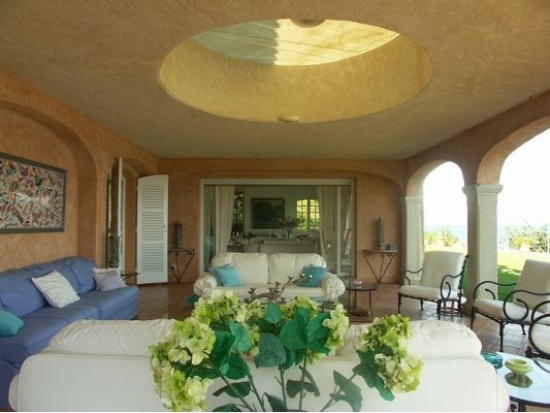 Belle villa au parc du Saint- Tropez. Villa de luxe , située au bord de la mer, dans une residence fermée à Saint -Tropez. Superficie de la maison est d'environ 550 m ² et la superficie du terrain sur lequel il y a un magnifique jardin paysager est de 5000m ². La villa a une vue imprenable sur la mer avec accès direct sur la plage et vous fournira un confort unique et l'accès à des lieux très pittoresques de Saint- Tropez.