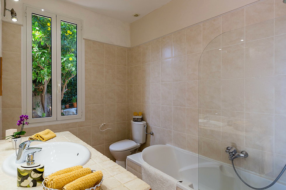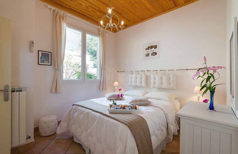 Cette magnifique villa méditerranéenne, très unique et méditerranée, a été entièrement rénovée en 2013. Les terrasses meublées orientées vers le sud donnent sur le jardin méditerranéen avec une vue panoramique sur la mer et les montagnes. Les patios comprennent: