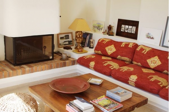 Un coin salon confortable avec canapés et une cheminée