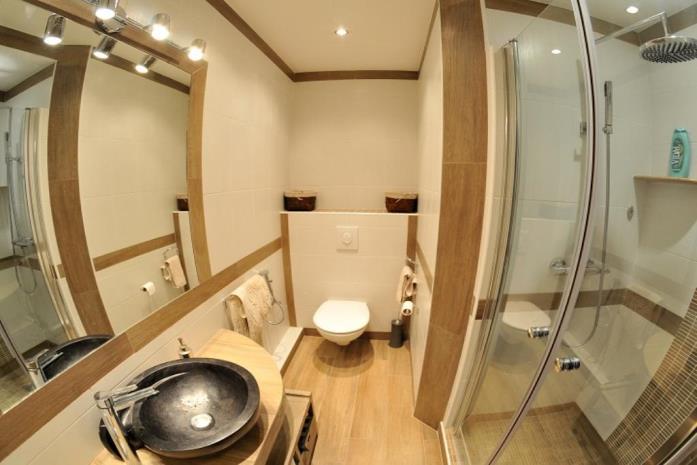 2 chambres, chacune avec salle de bains privative.