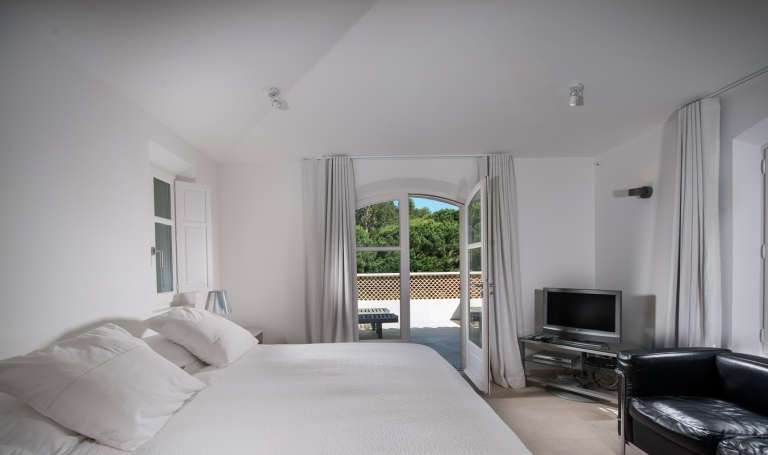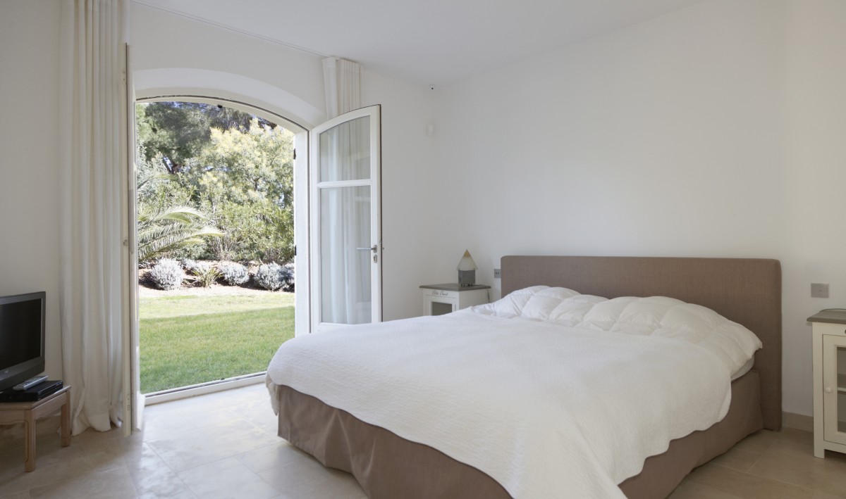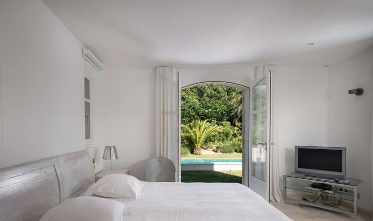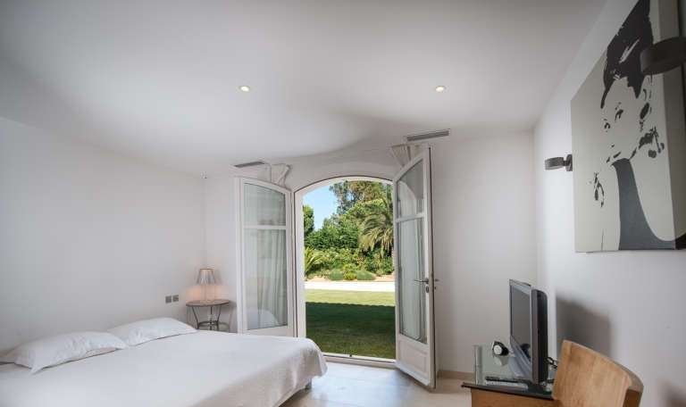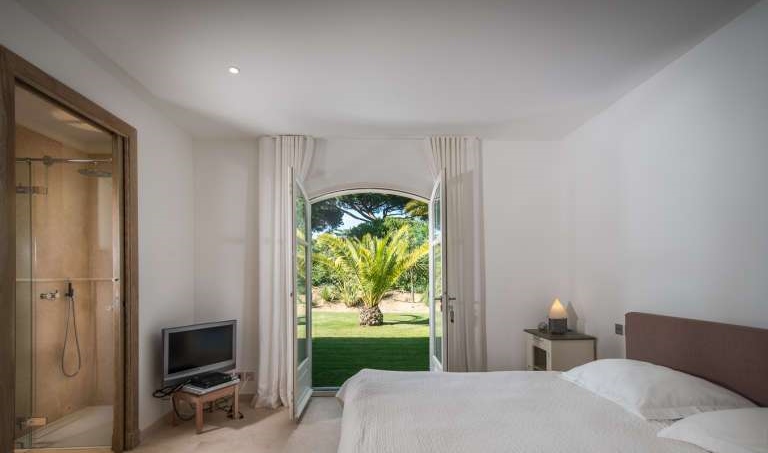 - Une chambre avec une salle de bains et un balcon donnant sur le jardin
