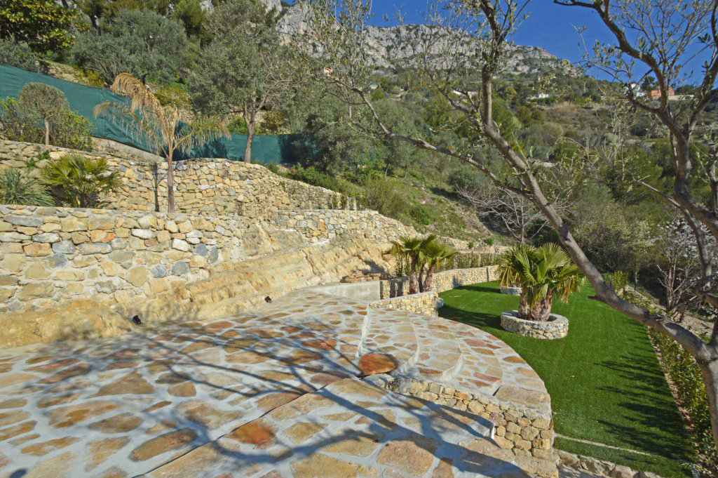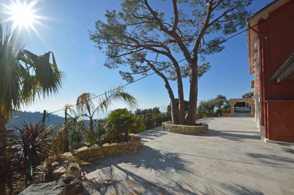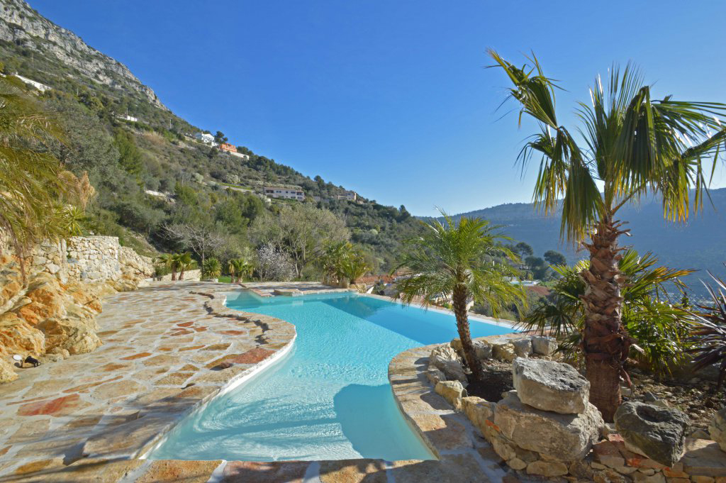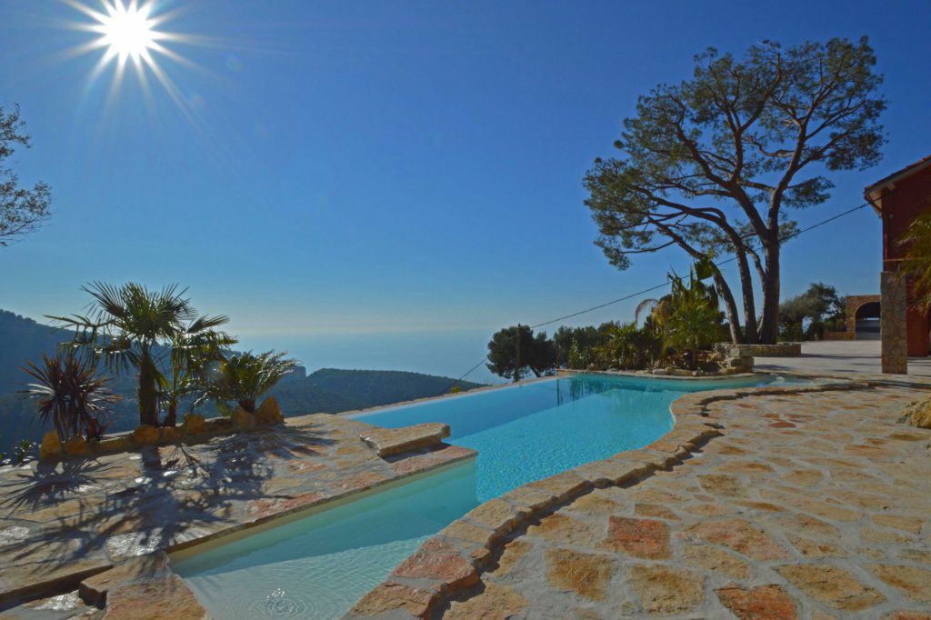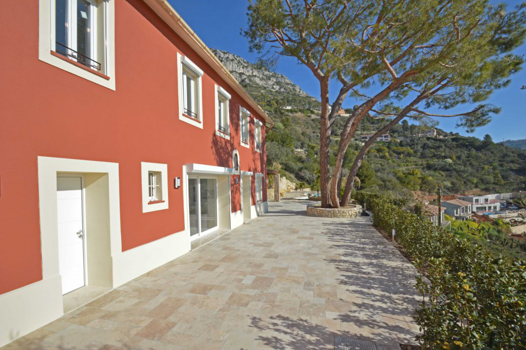 Proche d'Eze village, villa rénovée d’environ 260 m2. En position dominante, elle bénéficie d'une vue mer et collines panoramique. Sise sur un beau terrain de 1680 m2 environ, elle comporte une superbe piscine à débordement.