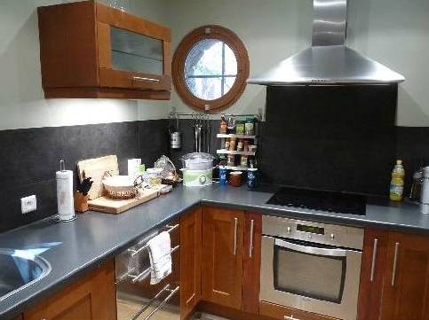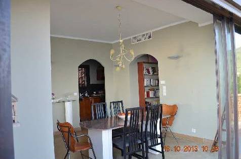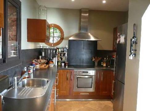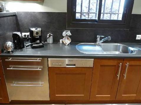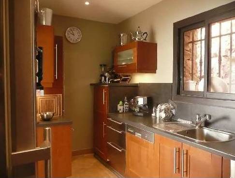 A droite de la salle de séjour sont la zone de salle à manger et une cuisine. La cuisine est entièrement équipée avec tous les outils du 21ème siècle. Très confortable et facile à préparer. Sortir de la cuisine directement à la table à manger pour 6 personnes et les fenêtres de la cuisine sont situés à l'arrière du site. La salle à manger donne sur un balcon où il y a une petite table basse.