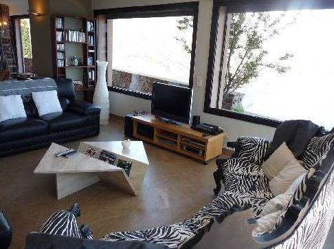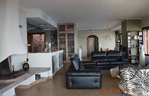 La maison est une grande porte en bois, derrière lequel il y a un petit hall d'entrée et d'un salon. Vivre dans un style moderne, 2 canapés en cuir et un canapé zèbre, cheminée, salut technologie, TV, chaîne hi-fi. Très moderne et élégant. Volets électriques sont ouverts à l'aide de la télécommande dans le salon et dans d'autres pièces au toucher d'un bouton. Tout au long de la maison, le système de conditionnement d'air, réglable au moyen d'un panneau séparé dans chaque chambre.