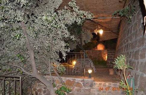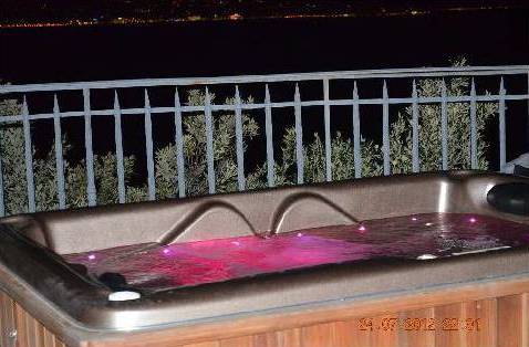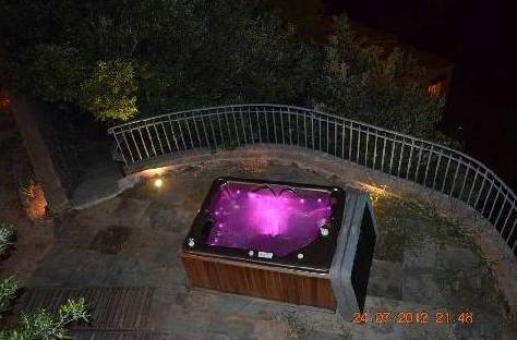 Le site est fait à différents niveaux, sur le bon niveau est un salon spacieux avec une table, et à un niveau inférieur - Jacuzzi.