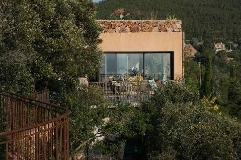 La maison est située dans une communauté fermée fermée. Près de l'entrée de la parcelle est un garage. A l'entrée, en face de vous, offrant une vue imprenable sur la mer, Cannes, Antibes, les îles de Lérins.