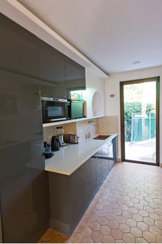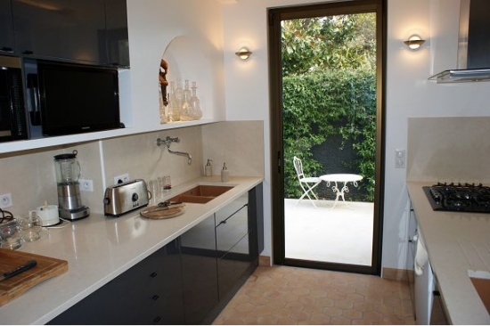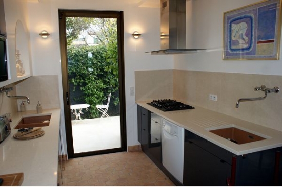 1er étage: cuisine équipée avec deux lavabos et un four double, grand salon - salle à manger avec une vue magnifique sur la baie et baies vitrées donnant sur la terrasse. La maison dispose d'une cheminée, salle de télévision, climatisation.