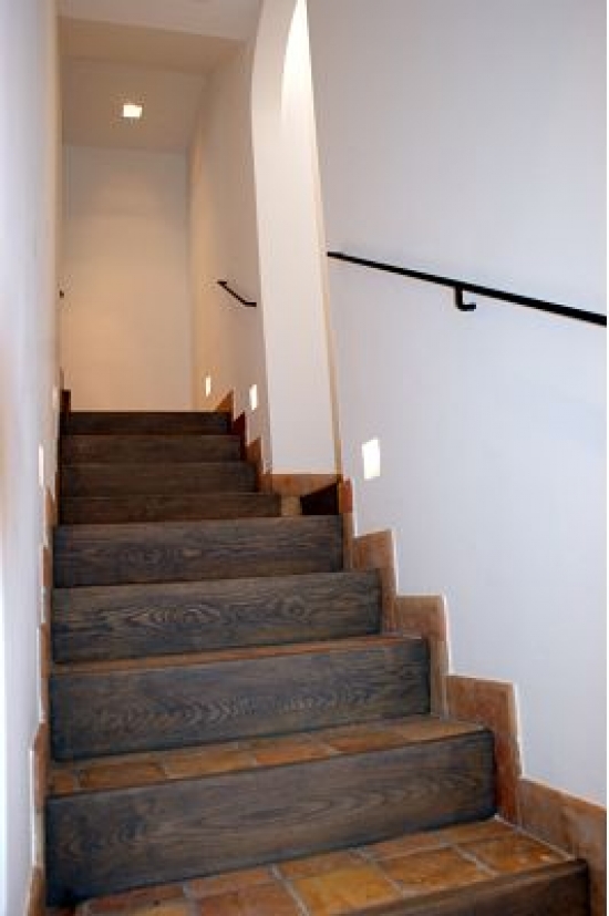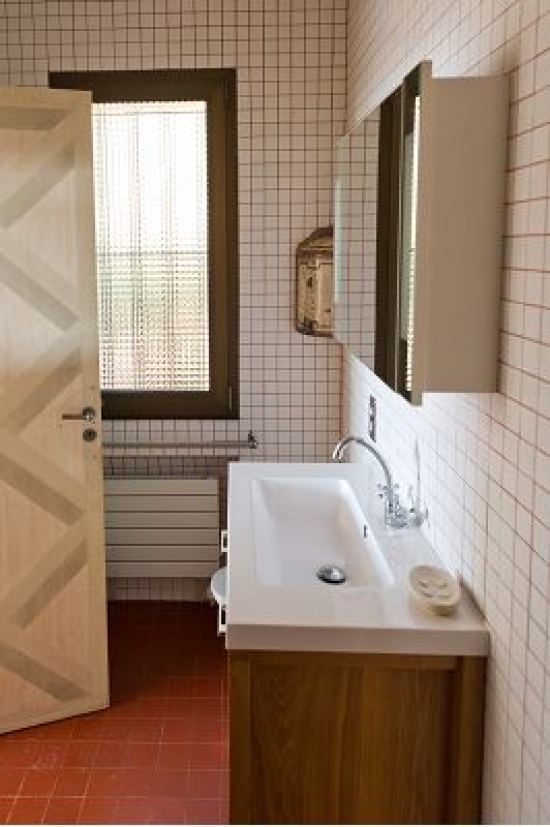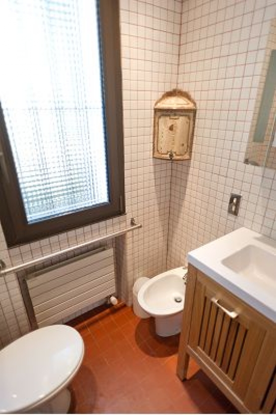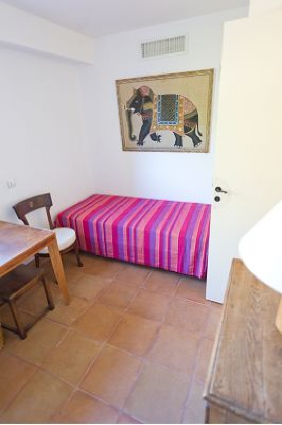 Rez de chaussée: 2 chambres avec lits jumeaux, salle de bains avec douche et WC, une grande pièce centrale et une salle de jeux. Les chambres et salles de bains sont équipées de vitraux pour que la lumière puisse avoir l’accès dans la pièce.
