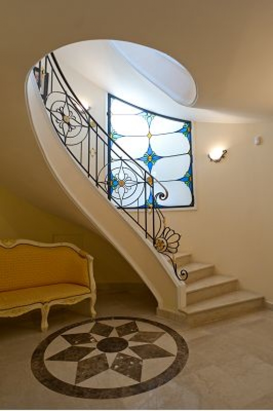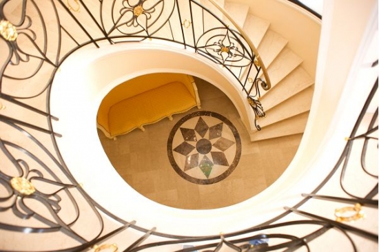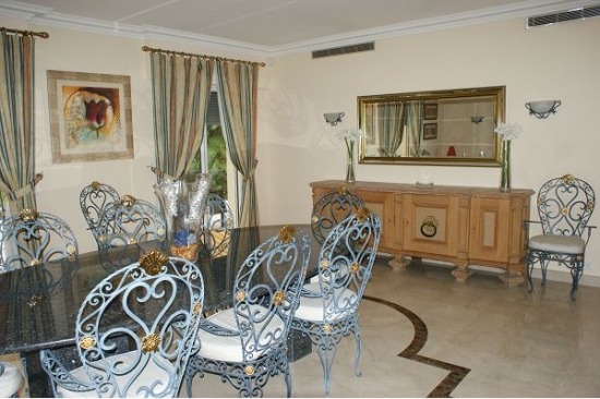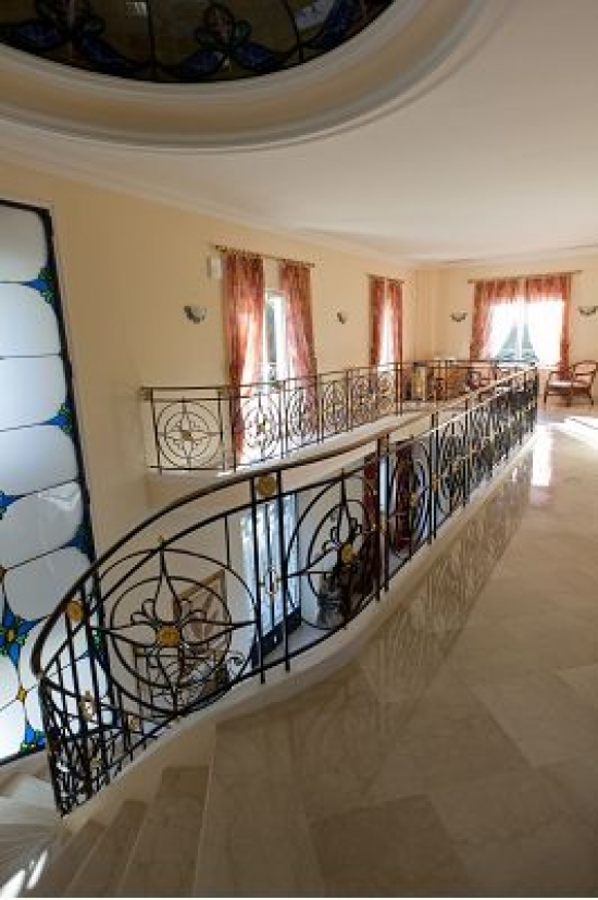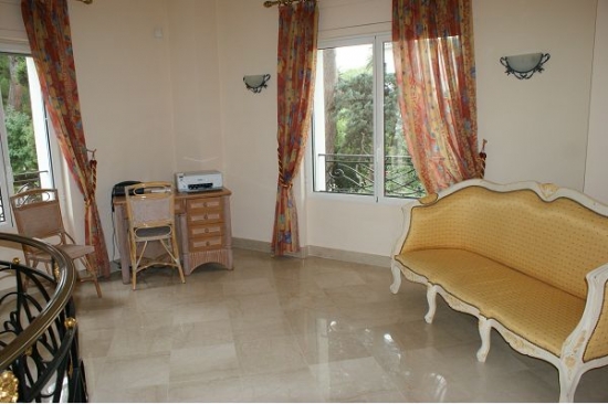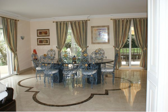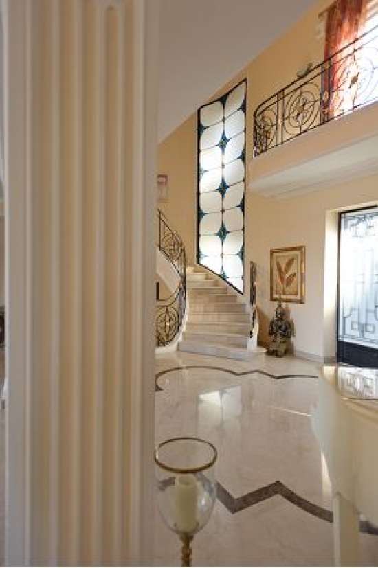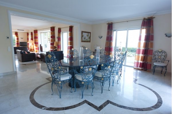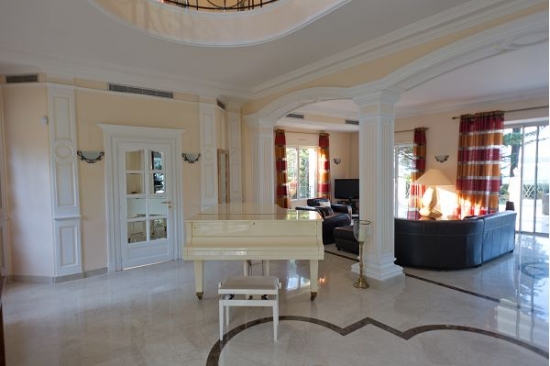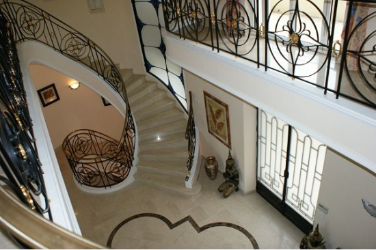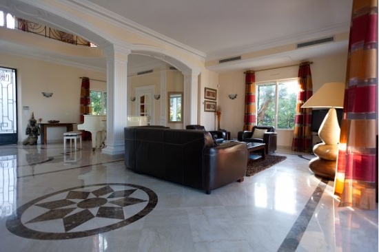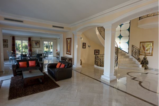 La maison est décorée avec escalier de marbre menant à l'entrée principale, suivie par le salon de 60m ² avec des zones séparées pour la détente et de superbes vues sur la terrasse.