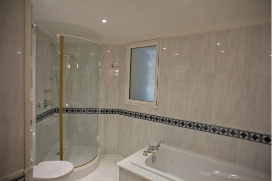 Au rez-de chaussée il y a un 6 chambres, chacune avec une salle de bain privée avec douche, baignoire et toilettes. De chaque chambre il y a une sortie sur le jardin.