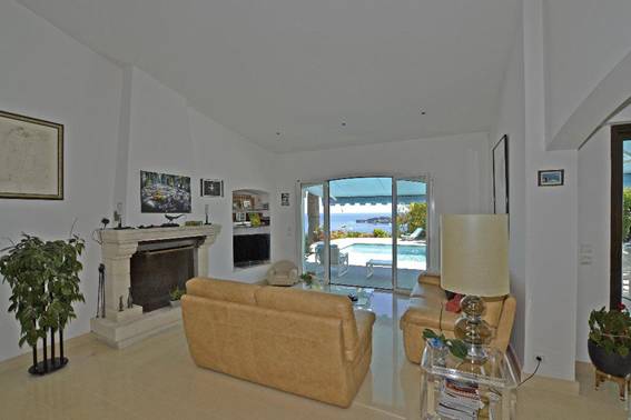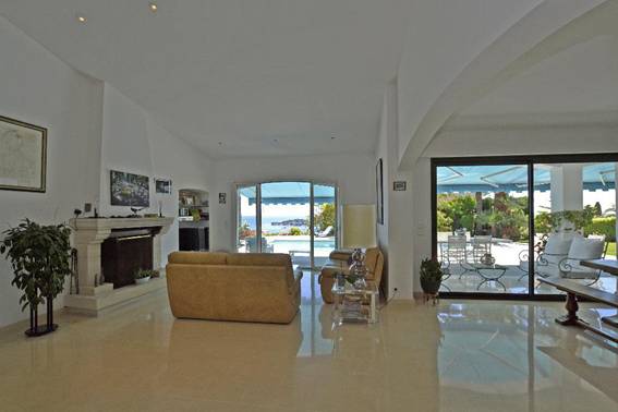 - Séjour avec cheminée et accès à la piscine