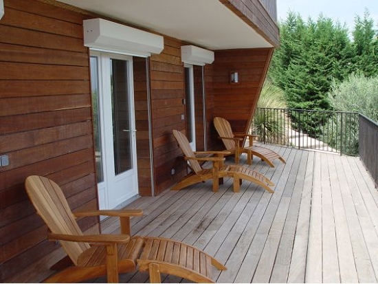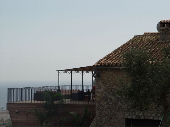 Au deuxième étage, il y a une grande terrasse avec une vue magnifique sur les environs . En face de la maison se trouve une aire de stationnement.