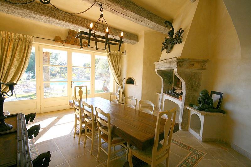 Salle à manger avec accès à la terrasse avec barbecue.
