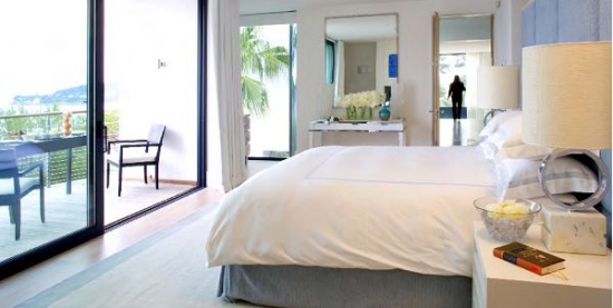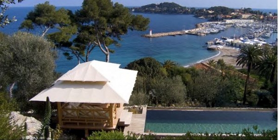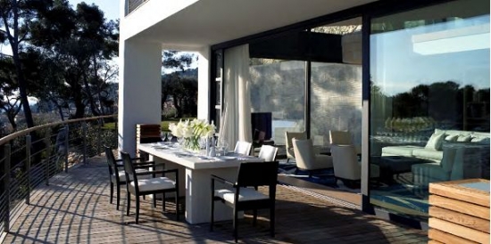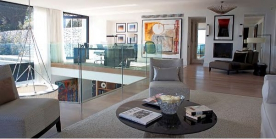 Au troisième niveau, à gauche la cuisine ultramoderne (composée de deux pieces) et salle à manger, et sur la droite, un salon spacieux avec cheminée, canapés, bibliothèque, TV et systhemes audio stéréo. Sur toute la terrasse du troisième étage s'étend la vue sur la mer (qui peut être vue à partir de toutes les pieces). Toutes les fenêtres de la salle de séjour et du salon s'ouvrent entièrement, en transformant la maison en une belle terrasse. Depuis le salon il ya un accès au jardin, avec une belle cascade.