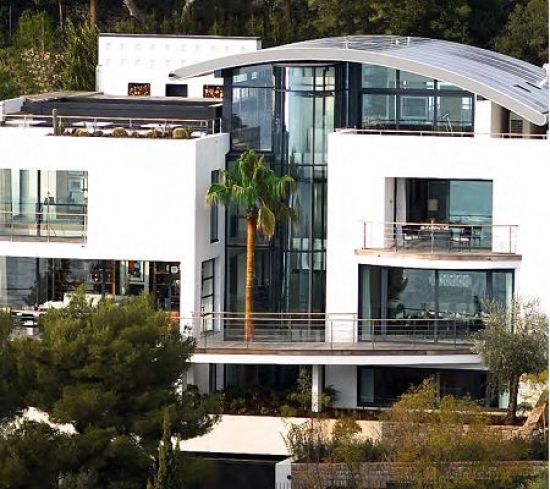 La villa est aussi belle que l'extérieur - élégantement blanche et vitré, avec de nombreuses terrasses, fenêtres panoramiques, qu'à l'intérieur - un intérieur luxueux, mais parfaitement adapté à la vie quotidienne - tout dans la maison est pensé et parfaitement traduit dans la réalité. La villa est sur 5 niveaux et est équipée d'un ascenseur en verre menant à chaque niveau.