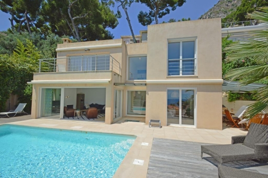 Belle villa dans un stile moderne de 160 m2 avec vue sur la mer, situé à distance de marche de la plage.