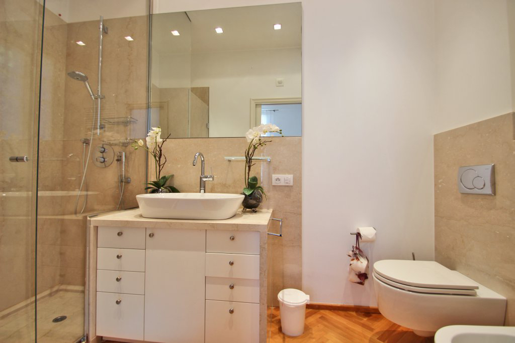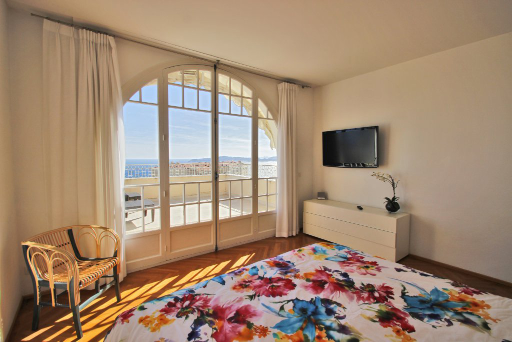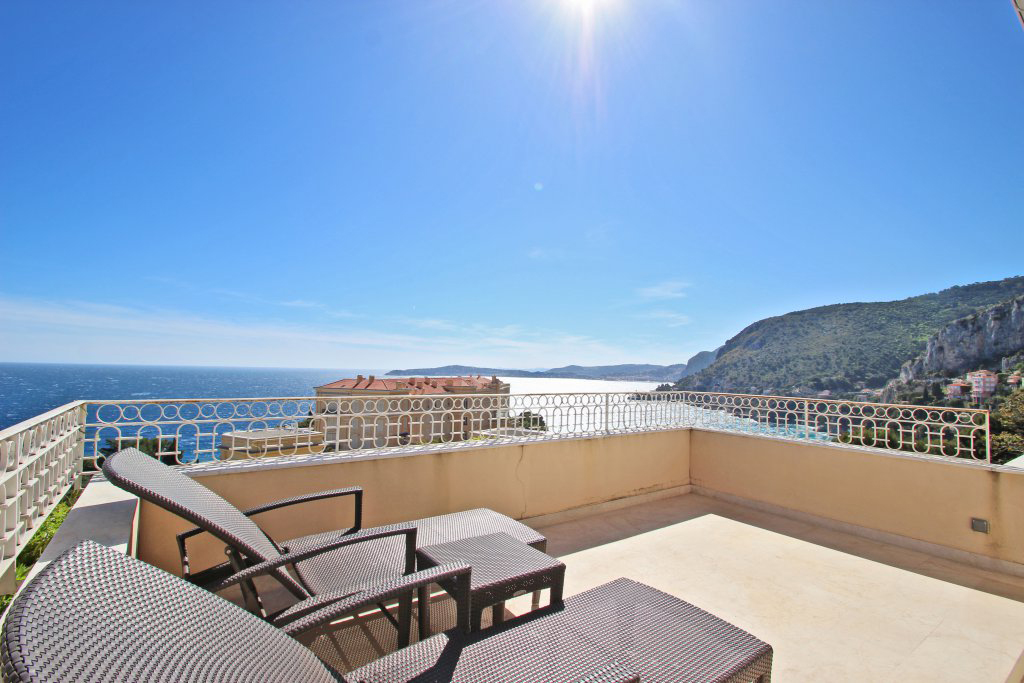 Un élégant escalier donne accès à trois belles chambres en suite avec une salle de bains et deux salles de douche à l'italienne et une magnifique terrasse vue mer.