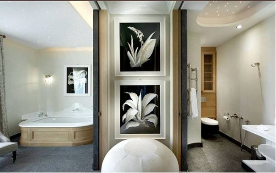 La chambre principale dispose de deux salles de bains avec baignoire et douche, ainsi que d' un dressing, coffre fort, terrasse privée confortable avec vue sur la mer. La chambre est équipée de la dernière technologie.