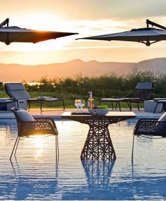 De la terrasse de la piscine il y a une vue imprenable sur la mer, un coin salon meublé avec des canapés. Le font de la piscine est réglable, ainsi que le confort supplémentaire dans le fait qu'il peut être complètement fermée et ainsi peut agrandir la terrasse - la solution idéale pour les grandes réceptions ou d'autres événements.