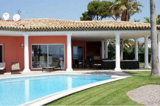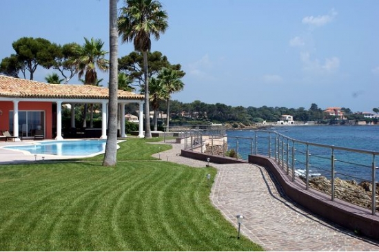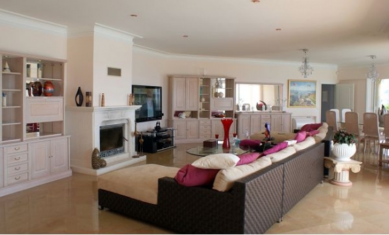 Villa moderne sur le front de mer, à proximité de la plage de sable organisée. Un endroit merveilleux pour se promener dans l'air frais avec beaucoup de divertissement pour enfants et adultes. Piscine en face de la maison d'une forme intéressante, décoré de mosaïques, jardin bien entretenu et pelouse. La maison dispose d'un accès privé direct à la mer. Salon avec beaux meubles confortables, une grande télévision et système audio, une salle à manger avec un bureau spacieux.