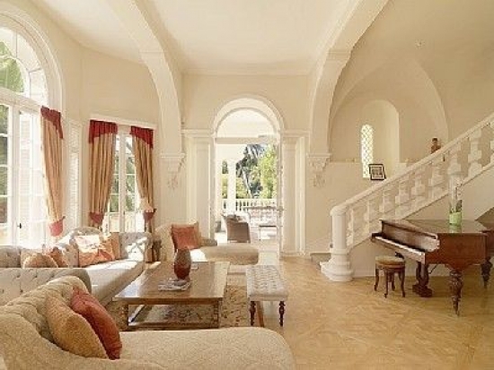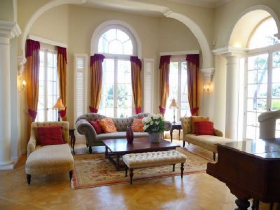 Superbe villa de luxe de 400 m² avec une magnifique piscine et un terrain de 3500 m² est situé dans un quartier calme du Cap d' Antibes à quelques minutes à pied de la mer et près de la plage de la Garoupe avec ses célèbres restaurants gastronomiques. Le domaine dispose d' un salon spacieux avec un piano et un mobilier confortable, une grande cuisine entièrement équipée avec table à manger pour 12 personnes, un salon confortable avec un écran plasma , un grand canapé et un piano. 6 chambres spacieuses avec lits doubles et une vue sur le jardin et la piscine. Le balcon est situé sur le périmètre de la maison, et de nombreuses chambres disposent d'un balcon. Une des salles de bains comprend une baignoire et douche d'une forme intéressante. Terrasse avec table à manger et un coin salon.