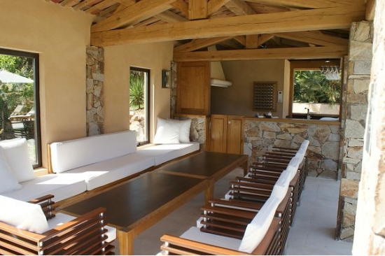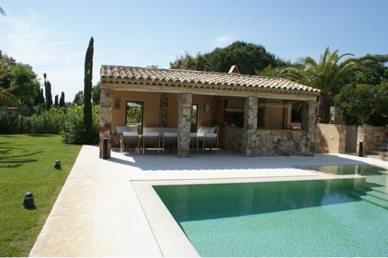 Terrasse couverte près de la maison est équipée d'un barbecue et d'une spacieuse salle à manger. Grande piscine avec transats, chaises longues et parasols. Petite maison près de la piscine équipée avec la cuisine en plein air en option et un coin salon. La villa est idéale pour des vacances à la plage.