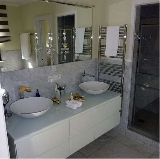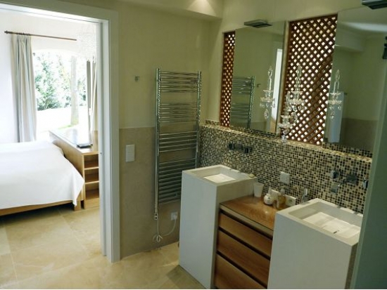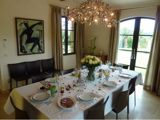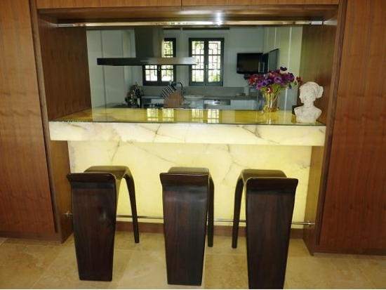 A votre disposition 7 chambres, 7 salles de bain, une grande cuisine, un salon spacieux, un salle de repos séparée, salle à manger. Piscine, jardin bien entretenu. La maison est équipée avec des appareils modernes. Les chambres sont décorées individuellement, offrent une vue imprenable sur la verdure, la piscine et les environs. Salle à manger bien meublée dans un design moderne avec des éléments de glamour, avec une grande table à manger pour 8 personnes et un bar.