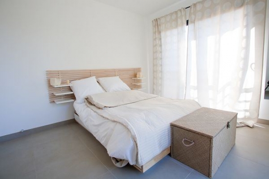 Au rez -de-chaussée il y a un hall d'entrée, vestiaire, salon, salle à manger et cuisine Au deuxième étage il y a 3 chambres avec des grands lits, 2 salles de bains avec douche et une avec baignoire, WC, terrasse.