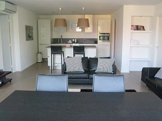 Décorée avec du goût et meublé au plus haut niveau . On y trouve des canapés en cuir , nouvelle cuisine équipée avec le lave-linge, le lave-vaisselle, deux salles de bains avec carrelages italiens , les dressings, la climatisation et le chauffage . La grande chambre principale dispose d'une télévision et d'un bureau.