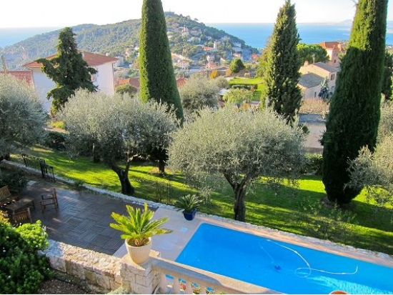Villa dans le style aristocratique est situé à Villefranche -sur -Mer construit dans les années 60 par un architecte russe. Grande terrasse devant la maison avec une vue magnifique sur la baie de Cap Ferrat et de l'ancien château. Une piscine profonde et longue, chauffée, entourée d'un jardin d'agrumes et d'oliviers.