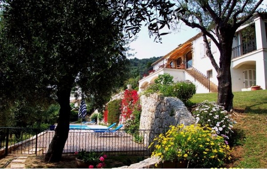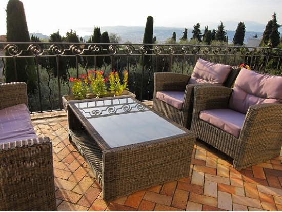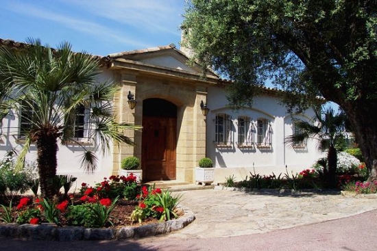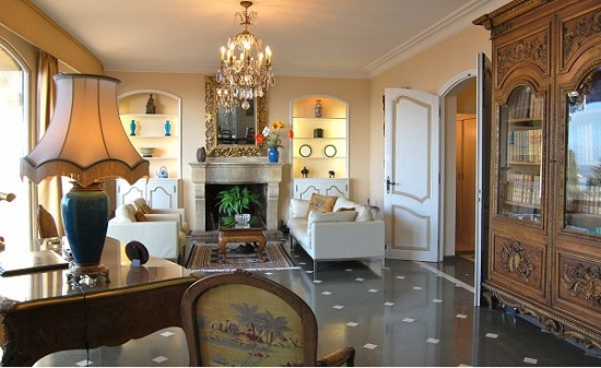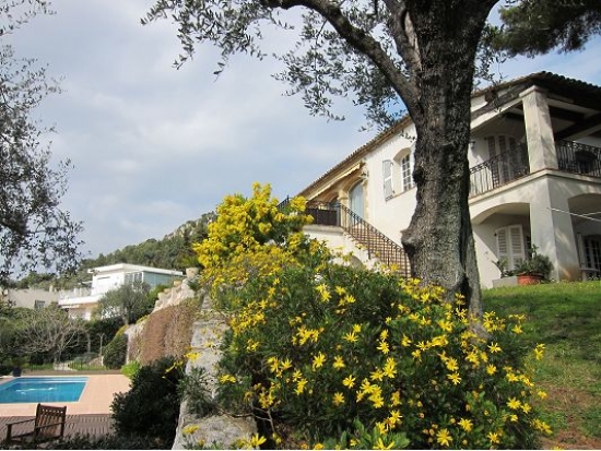 Villa dans le style aristocratique située à Cap Ferrat , construite dans les années 60 par un architecte russe . Grande terrasse devant la maison avec une vue magnifique sur la baie de Cap Ferrat et l'ancien château .