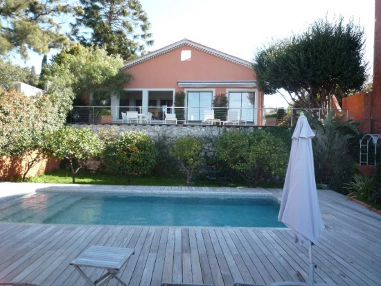 Jardin de 1000 m2 avec une piscine. 5 chambres, 3 salles de bains, 2 salles d'eau.