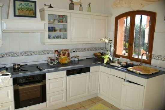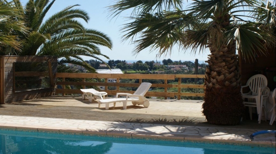 Villa dans le style provençal, situé à Antibes dans un endroit confortable avec une belle vue sur les montagnes et la mer. Surface du terrain est de 1.900 m², sur le territoire se situe une petite fontaine. La maison d'une surface de 230 m² , une piscine de 12x6 m avec une terrasse autour. La maison dispose de 3 niveaux et un garage pour une voiture. Le territoire dispose de places de stationnement pour 2-3 voitures. Au premier étage se trouvent le salon, chambre, salle de bains. Au deuxième niveau se situe une salle de séjour de 40 m² avec une belle cheminée, cuisine entièrement équipée, 1 chambre, salle de bain et grande terrasse de 50 m². Le dernier étage dispose de 3 chambres (2 pour 2 personnes et une pour 1 personne ), une salle de bains et une magnifique terrasse de 19 m² La maison dispose de 5 chambres, 3 chambres avec lits doubles, une avec deux lits simples et une avec un lit simple. La maison est joliment meublée. La terrasse de la piscine est bordée d'arbres, un espace détente avec transats et d'une table pour 6 personnes. Depuis les terrasses et fenêtres de la maison s'ouvre une belle vue sur la mer, les montagnes et les alentours.