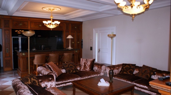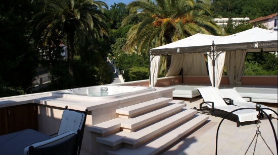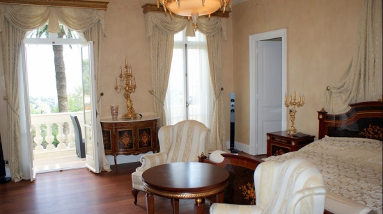 La villa se compose de deux parties - dont l'un est un bâtiment d'origine magnifiquement restauré, et la seconde juste construite. La villa a un style classique, luxueusement meublée et équipée avec les dernieres technies modernes ( appareils ménagers, système de climatisation, les systèmes audio / vidéo , etc ) La villa dispose de 8 chambres, d'une cuisine moderne entièrement équipée, un salon luxueux, idéal pour les réceptions et les fêtes, une spacieuse salle à manger, bibliothèque / maître d'étude de la maison, cave à vin , home cinéma. Salons, salle à manger, chambres à coucher ont des cheminées (en tout il y en a 9). Toutes les chambres ont une salle de bains privée, certaines avec baignoire, douche et autres systèmes modernes. Le salon de luxe et villa de chambre a une vue magnifique vue sur la mer et sur Cannes. De l'une des salles de la villa s'ouvre sur une grande terrasse, sur laquelle est installé une tente blanche avec des canapés confortables et un bain à remous dans le confort dans lequel vous pourrez apprécier une vue sur la Méditerranée et Cannes.