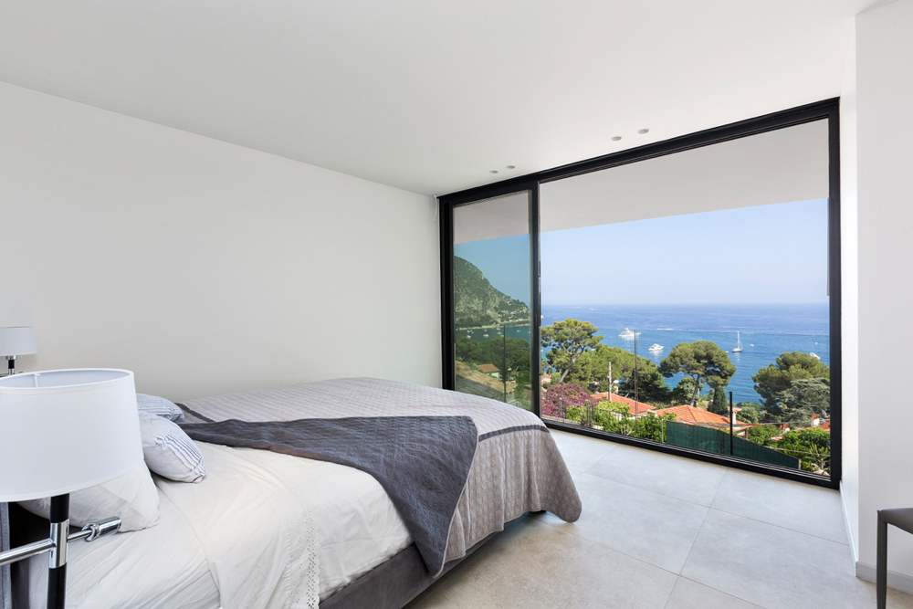 Le design de la villa est moderne et se compose d'un grand salon ouvert avec une cuisine ouverte entièrement équipée s'étendant sur la terrasse et cinq chambres avec salle de bains et vue sur la mer Méditerranée. Il comprend également un toit-terrasse offrant une vue panoramique sur la Côte d'Azur et un parking pour 5 véhicules. L'endroit idéal pour des cocktails au coucher du soleil.
